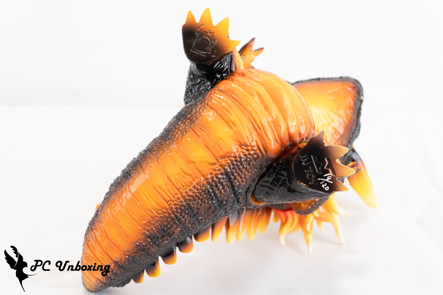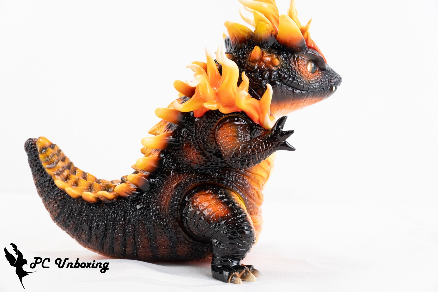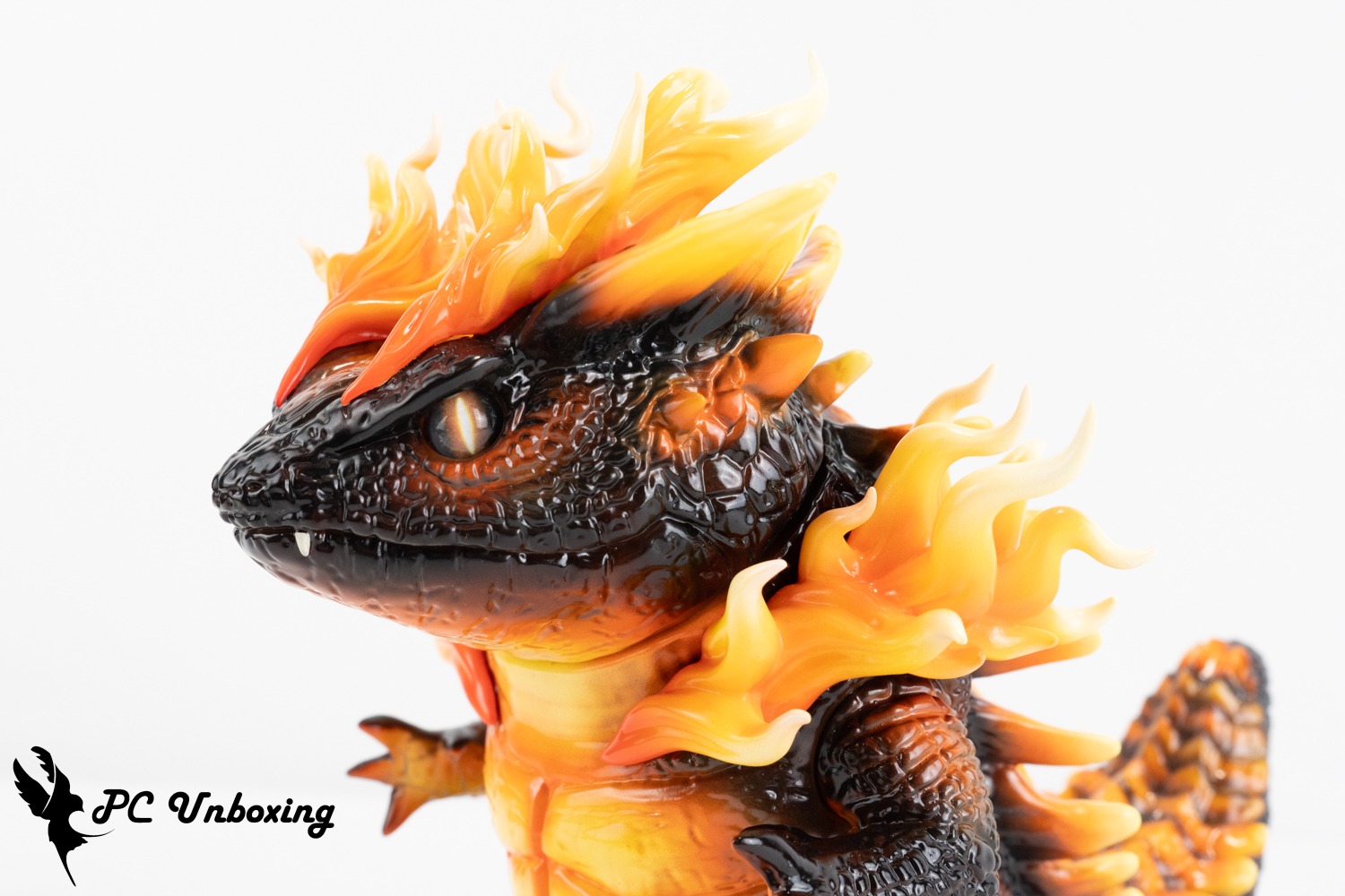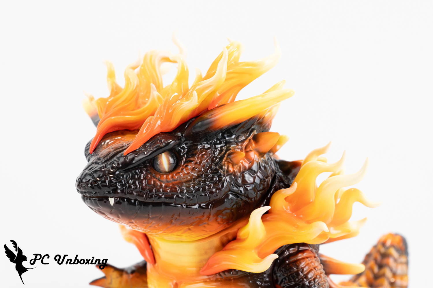 실제 살라만더 울트라 비스트입니다. 스플렌디드 골드 버전의 불꽃을 테마로 한 색상 구성(일반 버전은 투명하지 않고 숨겨져 있음)으로, 비늘의 주요 색상은 차콜 블랙이며 안쪽의 부드러운 살은 불의 불꽃을 상징하는 오렌지색으로 장식되어 있습니다.